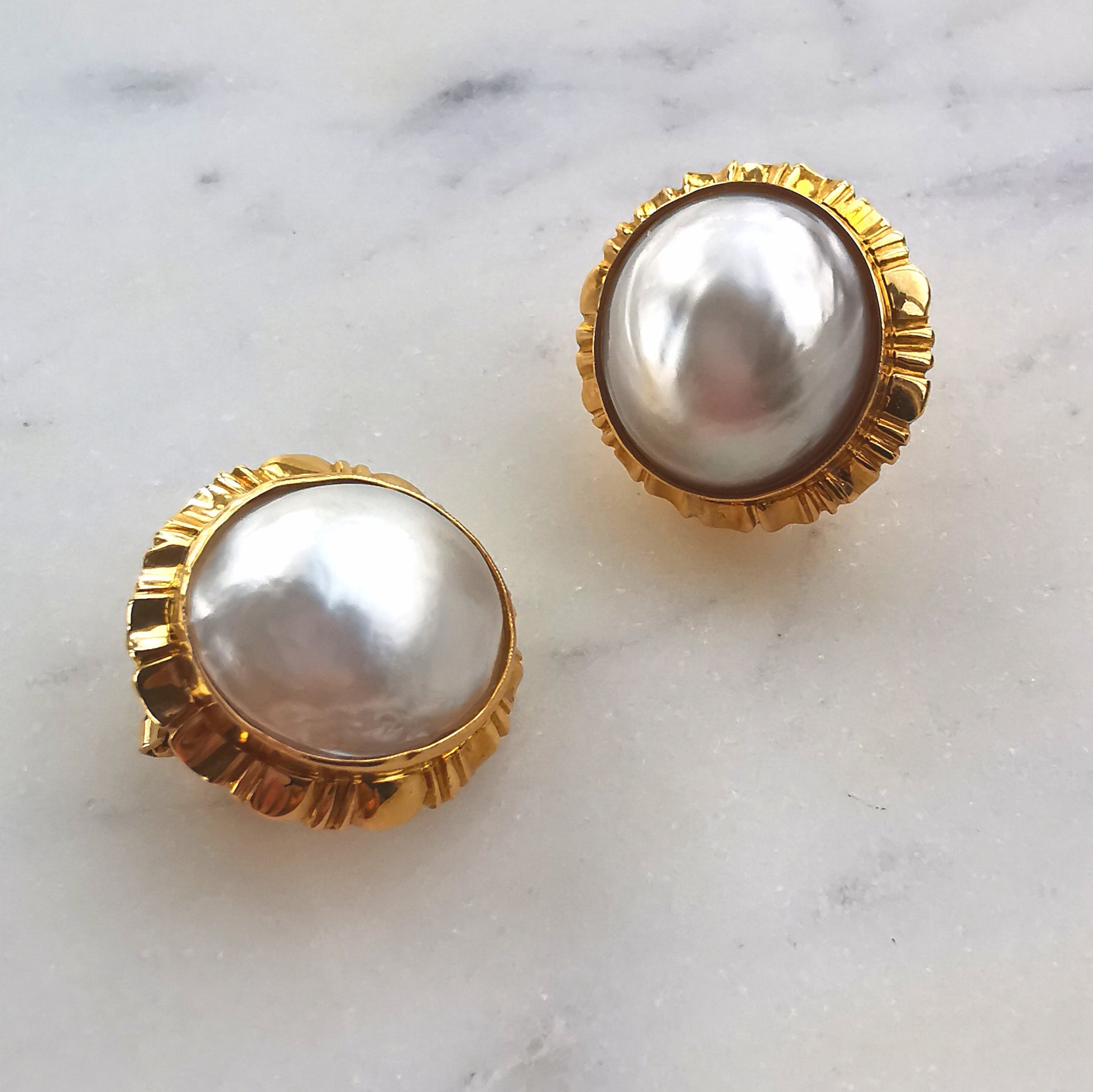 Mabe Pearl Gold Clip-On Earrings